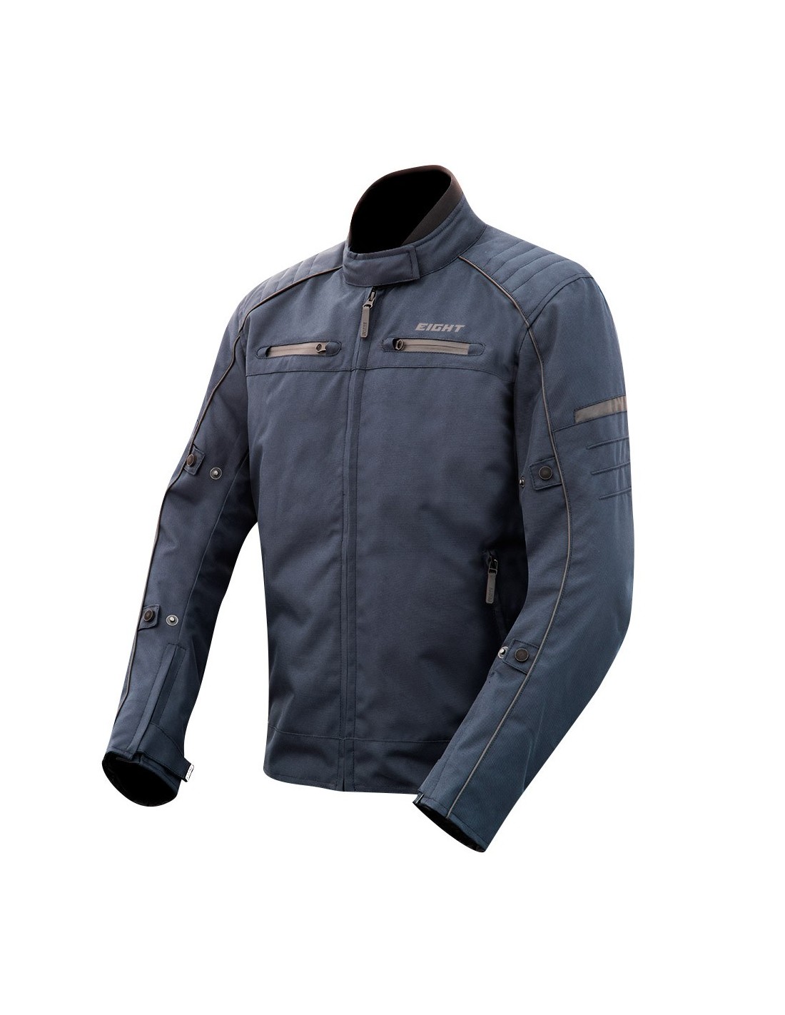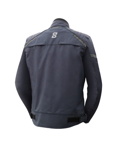 Feito em poliéster Oxford 600D, protege contra quedas e choques graças às proteções homologadas CE nos ombros e cotovelos;