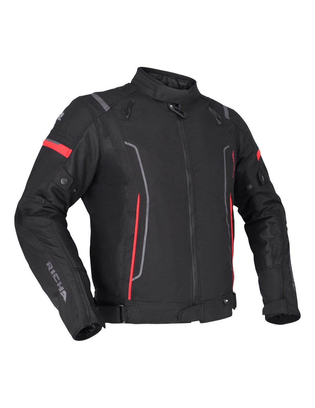 A jaqueta de motocicleta Airstream 3 da Richa tem um ajuste perfeito e é totalmente à prova de intempéries, para que você possa usá-la durante todo o ano. É feito de material durável em combinação com inserções de malha, o que o torna confortável, seguro e leve. Graças ao protetor de costas, bem como aos protetores de ombro e cotovelo, você está bem equipado com esta jaqueta de proteção classe A.