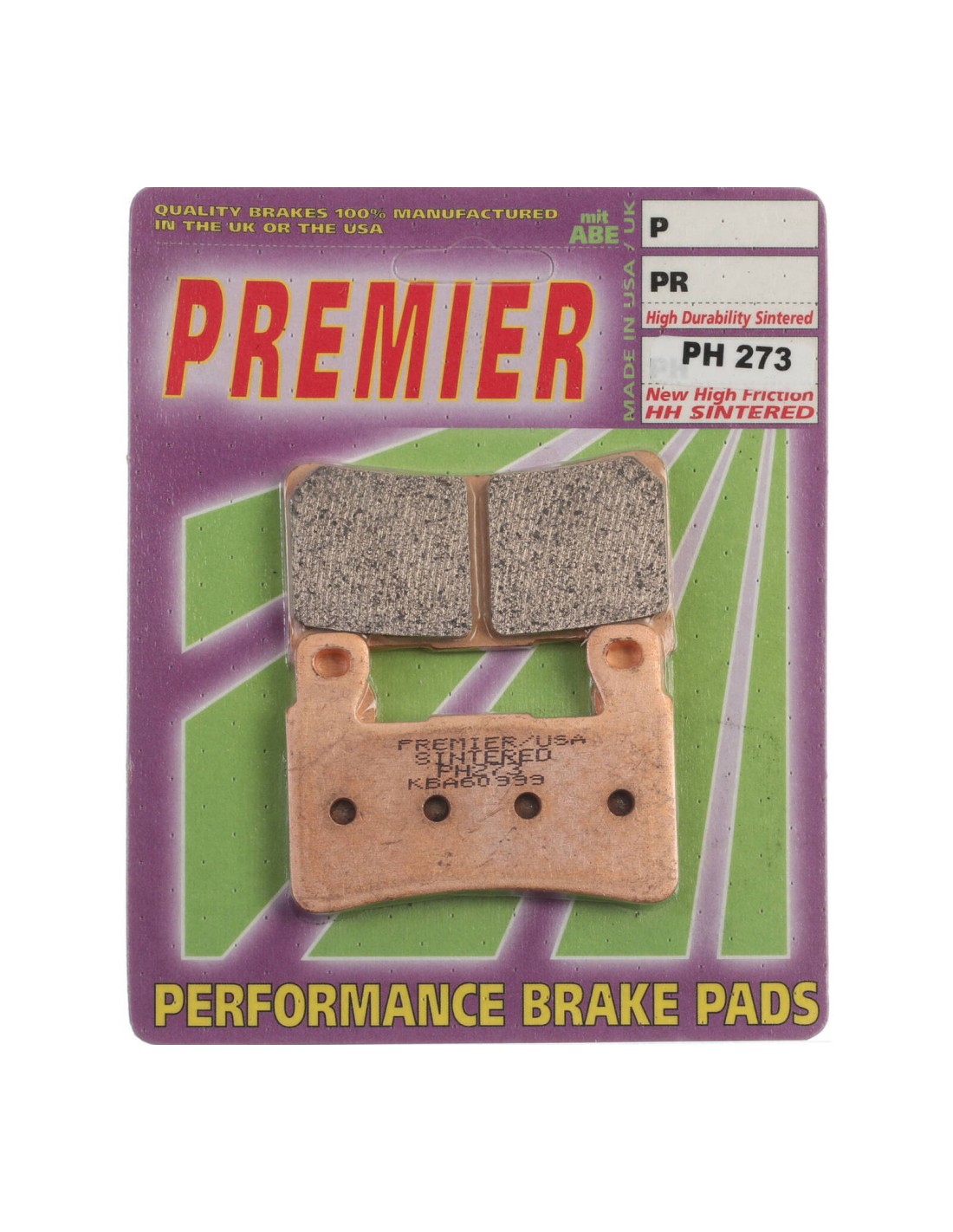Pastilhas de travão Premier Braking P273PH / FA296HH, de composto sinterizado HH, garantem travagens potentes, consistentes e seguras — ideais para motos desportivas, touring e adventure.